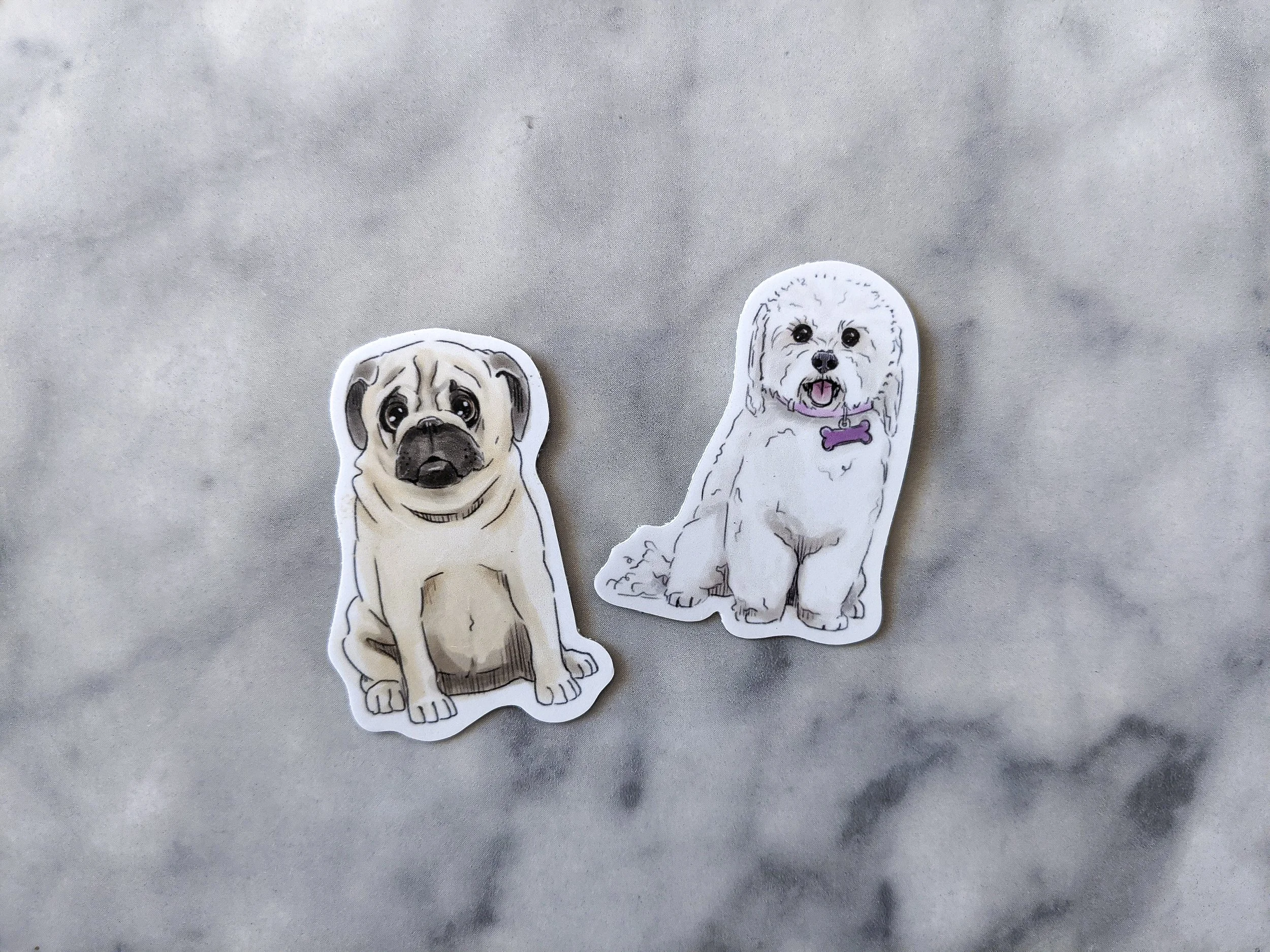 My wife and I run a small business together, where we sell artwork we have made. I created a series of dog illustrations, mostly based on family pets, and turned them into stickers.