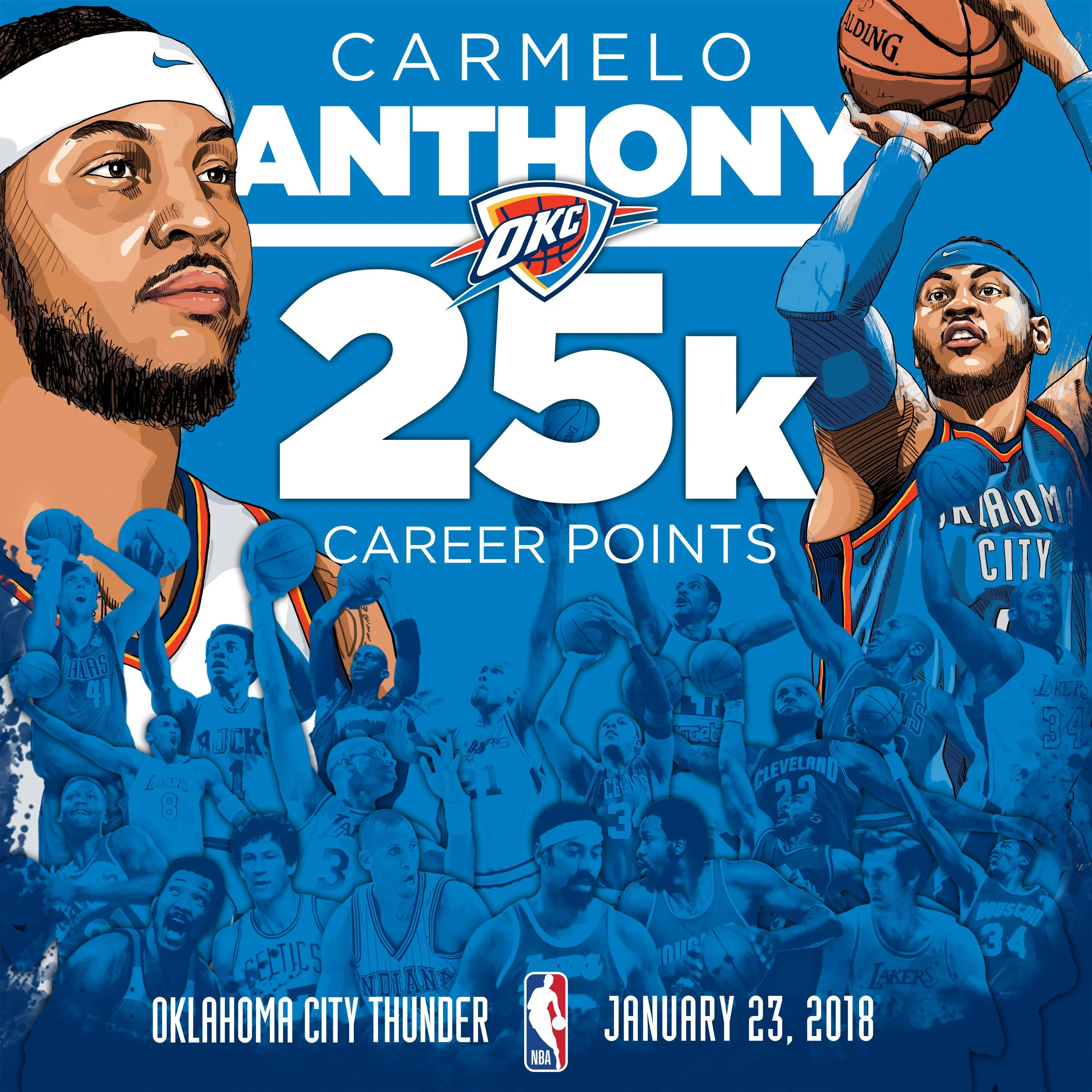 Player illustrations I created on a commemorative gift designed by Brandon Ankney for Carmelo Anthony when he reached 25 thousand career points.